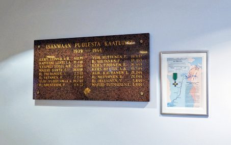 Kuvat: Lapin rajavartioston esikunnan Sankariaula, Pro Patria- ja Luton miesten muistoristitaulu, perinnetoimikunnan kokouksen osallistujat LRE:n Sankariaulassa 4.4.2024. Seinällä Luton miesten perinnetoimikunnan pitkäaikaisen puheenjohtajan, kunniarajajääkäri Jaakko Jokelan (1920-2014) muotokuva (T. Rantala) – Luton miesten lahja JJ:n 70-vuotispäivänä 27.6.1990.